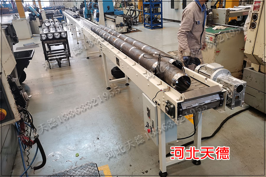 d、4個托輥按雙排中 心對稱布置,有利于不銹鋼輸送帶對中 運行,不會出現跑偏,托輥兩端尖角不與不銹鋼輸送帶接觸,可提高金屬鏈板輸送帶的使用壽命。