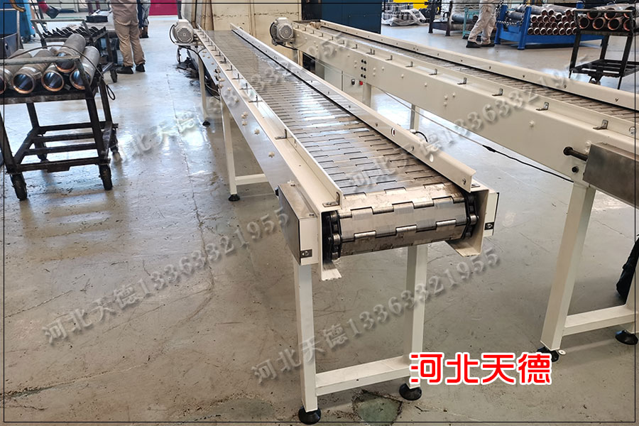 鋼板鏈條鏈板輸送機作為輸送設備中更常見的一種輸送機型,鋼板鏈條傳送輸送機以其運行平穩、輸送能力大、牽引鏈強度高等特點而為人們所熟知。 鏈板式輸送機絕大多數僅僅應用于生產活動,且以重工業為主,在各種摩托車、汽車的總裝輸送以及其他重量級設備的輸送,通過流水線操作,對于各種 大型設備的配置工藝進行調配,盡更大可能得合理分配每一道工序。 鏈板式輸送機等機械設備,創造了一個又一個奇跡。 鏈條傳送輸送機 在現代化工業生產中,鏈條傳送鏈板輸送機功不可沒。