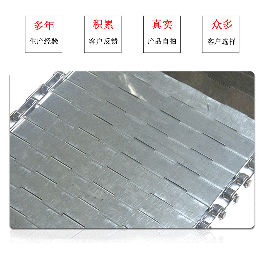 鏈板輸送帶:是采用不銹鋼板沖壓成型,鏈條傳動(dòng),每節(jié)由6-10mm支撐桿連接,其運(yùn)動(dòng)平穩(wěn)、力量大,適合用于輸送細(xì)小的高密度物件,輸送過程中運(yùn)轉(zhuǎn)平穩(wěn),安裝更換方便,成本高,使用壽命較長(zhǎng)。