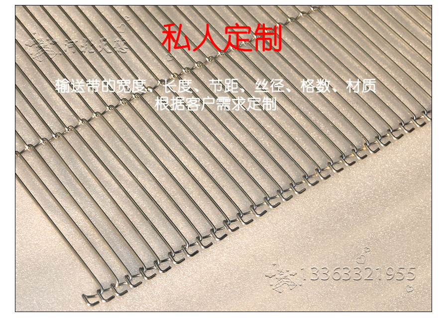 不銹鋼網帶屬于非標準件,我們將根據你提供的規格長寬,材質,不銹鋼絲線徑,編制結構尺寸,支軸直徑,支軸間距,鏈條型號等數據制作.