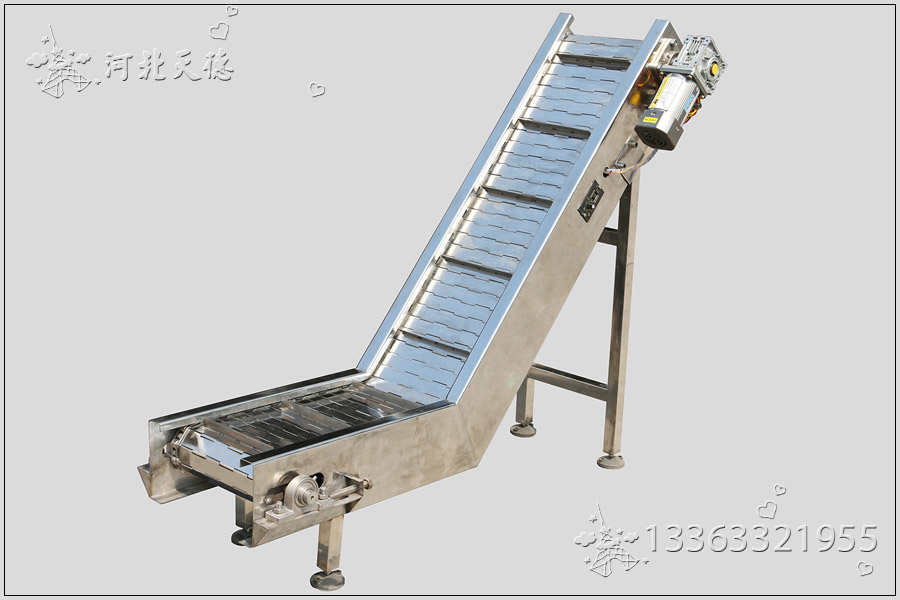 鏈板輸送機可以滿足飲料貼標、灌裝、清洗等設備的單列輸送的要求,同樣也可以使單列變成多列并行走緩慢,從而產生儲存量,滿足儲瓶臺、冷瓶機的大量供料的要求。鏈板輸送機可以將兩條鏈板輸送線的頭尾部做成重疊式的混合鏈,使得瓶(罐)體處于動態過度狀態,使輸送線上不滯留瓶子,可以滿足空瓶及實瓶的壓力和無壓力輸送。鏈板輸送機廣泛用于食品生產線、罐頭、藥品、飲料、化妝品和洗滌用品、紙制品、調味品、煙草等的自動輸送、分配和包裝的連線輸送。