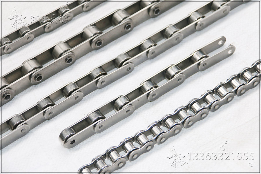 二、滾珠鏈條:該鏈條是在銷軸上依次串接外鏈板、內鏈扳、軸套、內鏈板、外鏈板及在軸套上套接滾珠組成單排鏈條。并且它特別適用在農業及工業傳動等機械設備上的鏈傳動裝置上